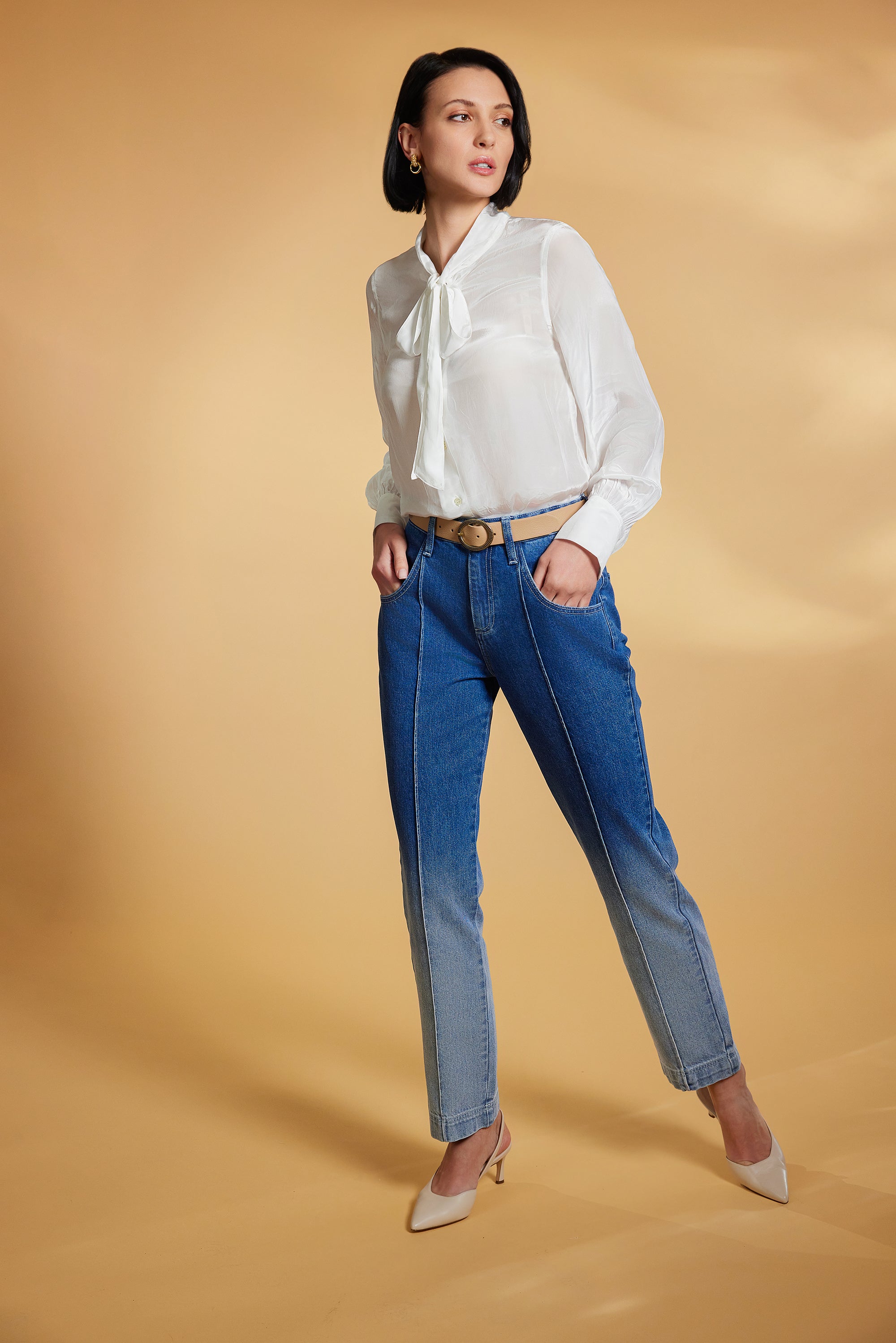 Pintuck Ombre Denim Pants